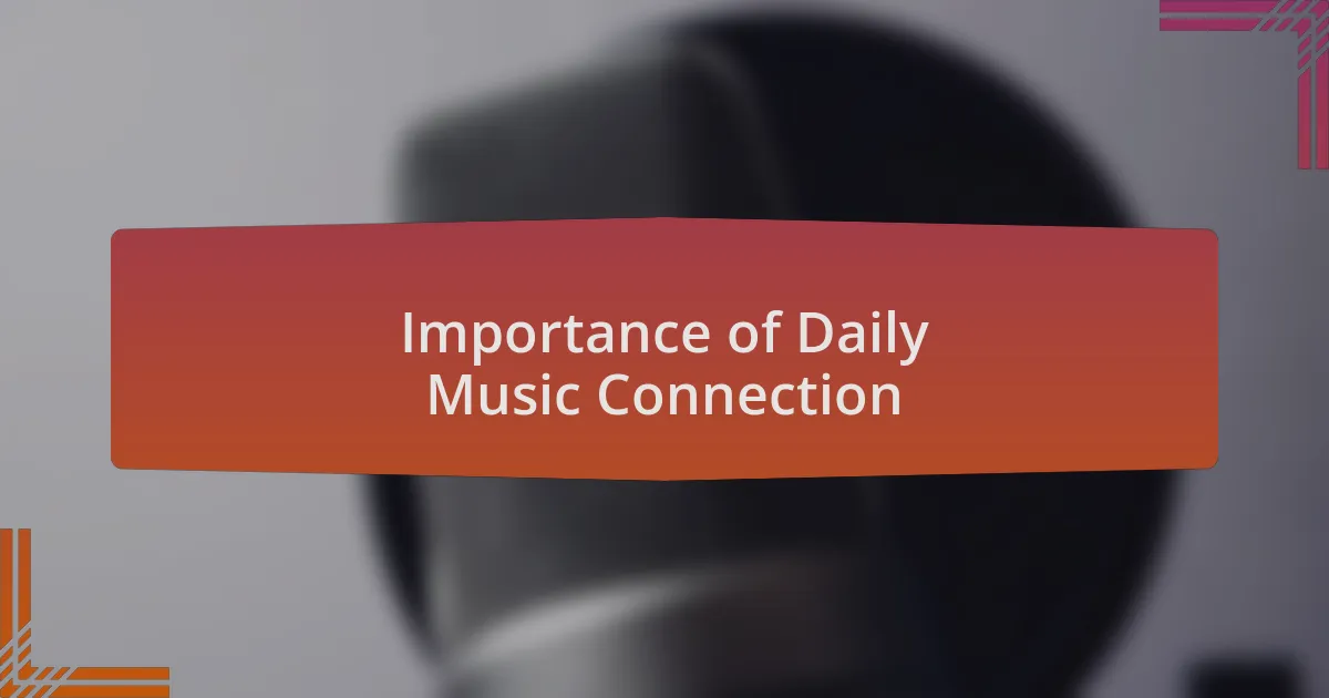 Daily connection with music isn’t just enjoyable; it’s vital for my emotional well-being. I often find myself spinning my favorite vinyl records during breakfast, setting a positive tone for the day. Have you noticed how a great song can transform your mood instantly? That daily ritual helps me maintain a consistent emotional balance amidst life’s ups and downs.