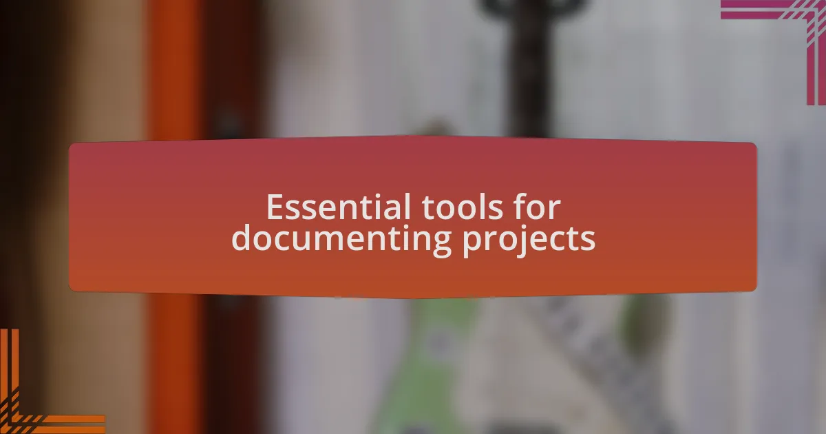 When it comes to documenting my DIY projects, having the right tools is essential. For me, a good camera is non-negotiable; I can’t tell you how many times I’ve looked back at blurry photos wishing I had captured the details better. Have you ever experienced that moment where the perfect shot just eludes you? Investing in a decent DSLR or even a smartphone with a good camera can elevate your project documentation significantly.