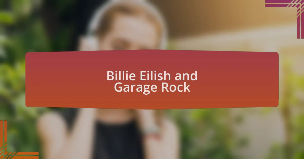 Billie Eilish’s style presents an intriguing blend with the garage rock aesthetic, often showcasing that rough, unpolished edge. I remember hearing her track “Bellyache” for the first time; the lo-fi elements made me think of classic garage rock. It’s fascinating how she manages to convey vulnerability and angst, much like garage rock’s most authentic artists, all while still maintaining a pop sensibility.