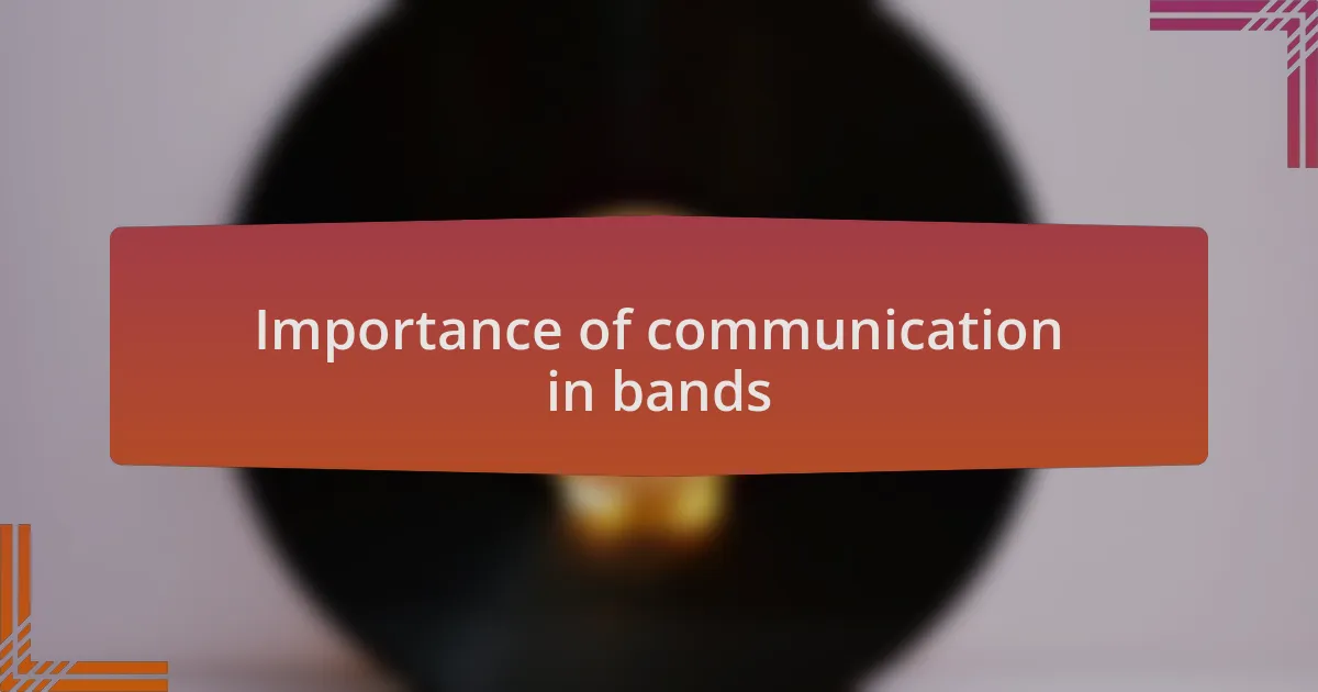 Effective communication can also be the difference between a thriving band and one that falls apart. I vividly recall a moment when we faced a major decision about our direction, and the lack of a roundtable discussion led to division. Reflecting on that experience, I now advocate for regular meetings where everyone’s thoughts are encouraged—it fosters creativity and builds a sense of belonging that strengthens band cohesion. Wouldn’t you agree that when everyone feels heard, the music just sounds better?